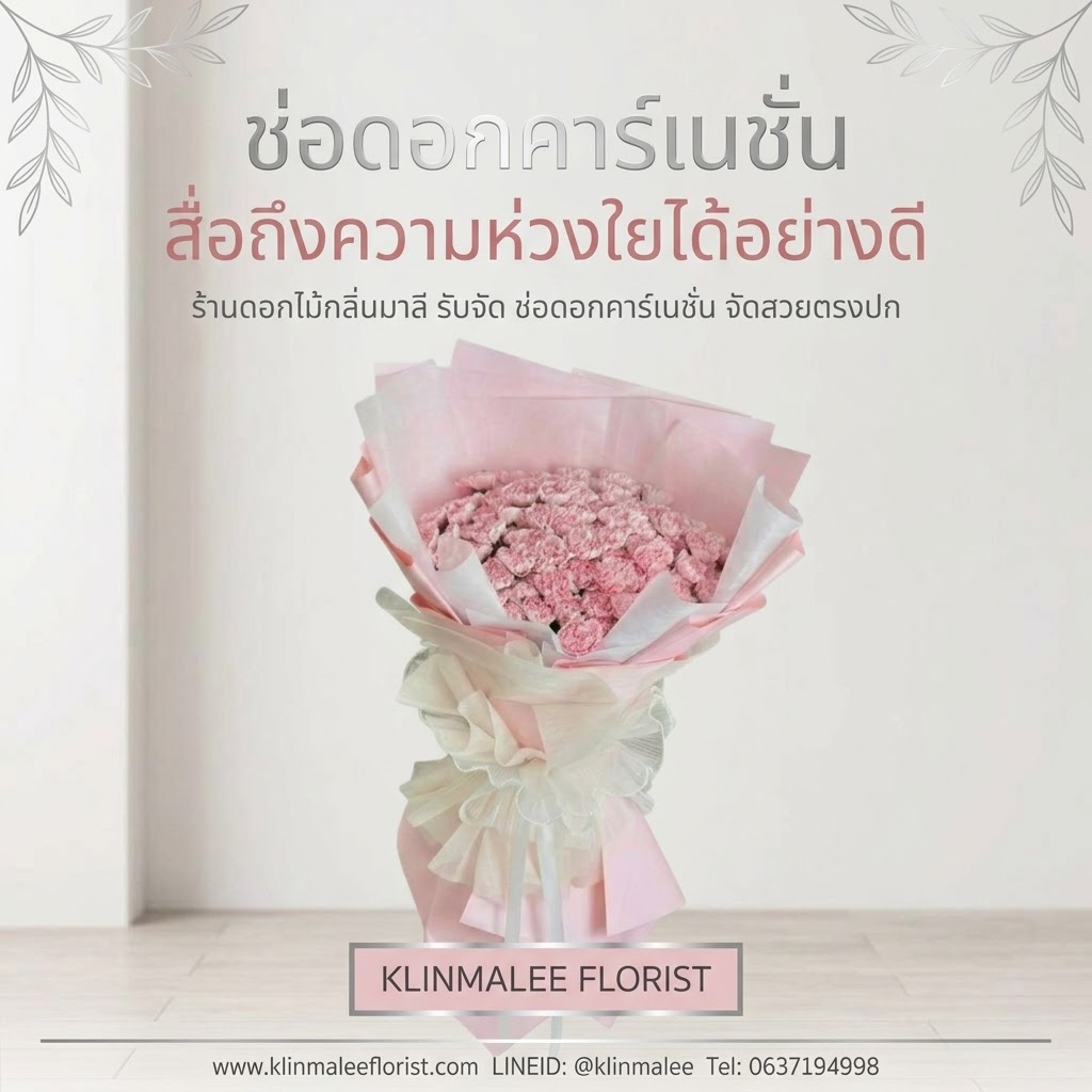 ตัดสินใจเลือกซื้อช่อคาร์เนชั่นกับเราตอนนี้ เพื่อส่งมอบรอยยิ้มให้กับคนที่คุณรัก! เรามีบริการของเราที่รวดเร็วและใส่ใจ พร้อมรองรับลูกค้าที่ต้องการสั่งดอกไม้ delivery ใกล้ฉัน จัดส่งไวถึงมือผู้รับอย่างแน่นอน การันตีความสวยงามด้วยโทนสีพาสเทลหรือโทนสว่างที่คุณสามารถเลือกได้เอง มั่นใจในคุณภาพจาก klinmalee florist ผู้รับประทับใจแน่นอน 100% ค่ะ หากยังลังเลสามารถเข้าไปเช็ครีวิว ( ก่อนซื้อดูรีวิวที่,ไม่โกงแน่นอน) ของเราก่อนได้เลย นอกจากนี้เรายังมีกล่อง/ตระกร้าดอกไม้สด และช่อดอกไม้รวม, Mixflowers สวยๆ ให้เลือกอีกเพียบ สั่งเลยวันนี้รับรองว่าไม่ผิดหวังค่ะ