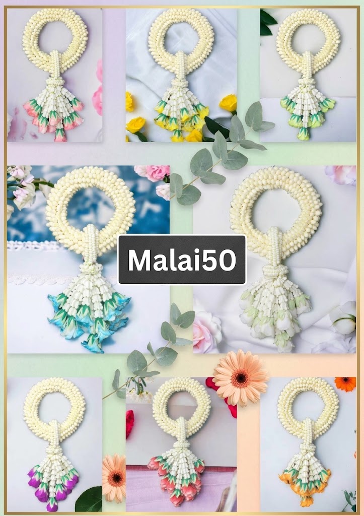 | Malai120 | งานรัดข้อ อลังการขั้นสุด ลายซับซ้อนมาก บางแบบมีรัดข้อหลายจุด | ทรงอุบะใหญ่พิเศษ อัดแน่นด้วยกลีบดอกไม้ ทรงสวยเป๊ะทุกมุม | พรีเมียม ไฮเอนด์ (Top Tier) โดดเด่นอลังการที่สุด เหมาะสำหรับเป็นมาลัยมาสเตอร์พีซในงาน |