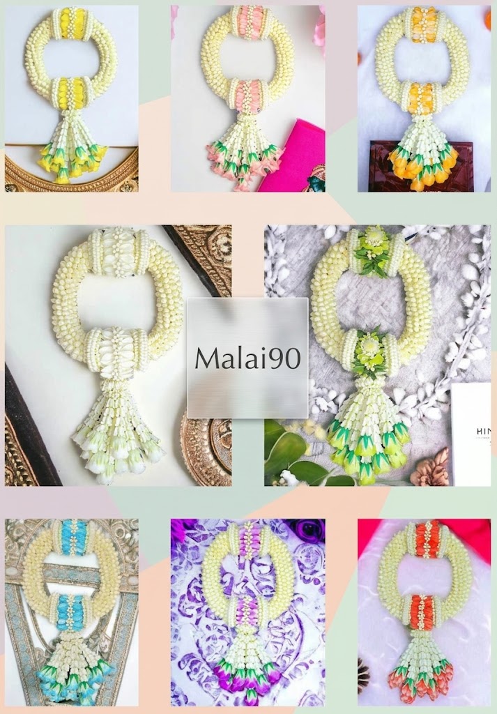 | Malai90 | งานรัดข้อ ใหญ่และกว้างขึ้น ลวดลายการสลับสีดอกไม้มีความซับซ้อน | พวงอุบะหนาใหญ่ จัดเรียงอย่างเป็นระเบียบและดูอิ่มฟู | หรูหรา วิจิตร โชว์งานฝีมือชั้นสูง ลวดลายละเอียดและดึงดูดสายตา |
