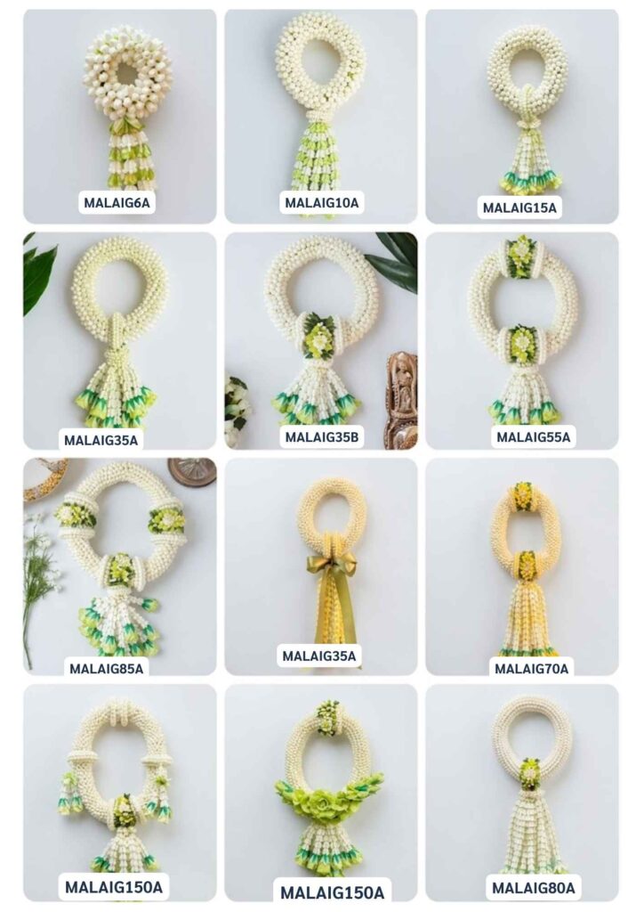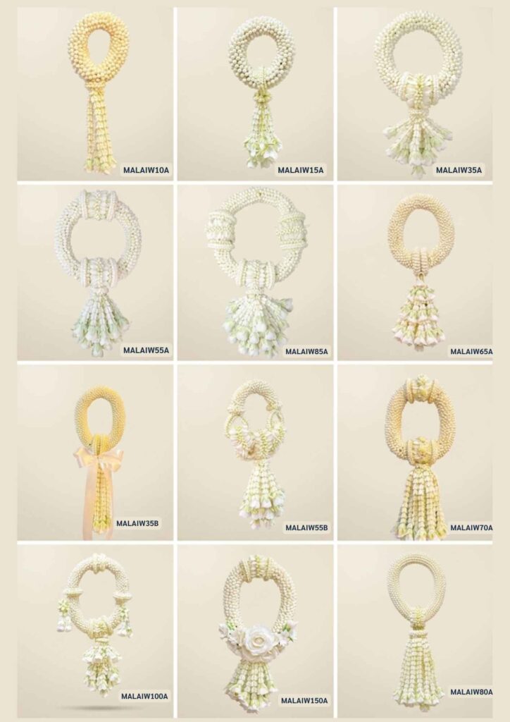 - งานแต่งงานหรืองานหมั้น: ใช้เป็นมาลัยรับไหว้ หรือเลือกใช้ พวงมาลัยบ่าวสาว โทนสีชมพู เพื่อสื่อถึงความรักที่หอมหวานและยืนยาว