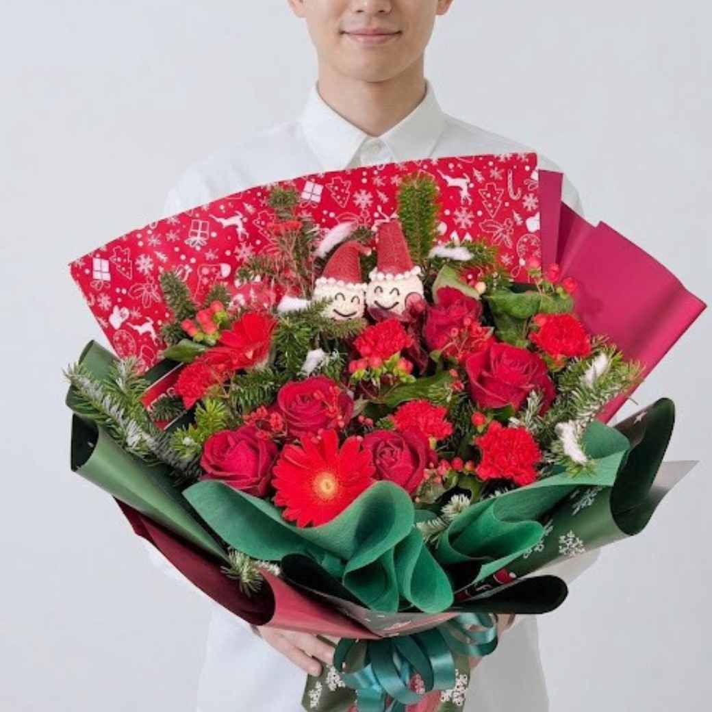 ช่อดอกไม้สด MR01 ช่อดอกไม้โทนสีแดงสดใสที่รวบรวม ช่อดอกกุหลาบแดง และเยอบีร่า ตกแต่งในสไตล์คริสต์มาสสุดพรีเมียม เหมาะสำหรับมอบเป็นของขวัญในโอกาสพิเศษ หากคุณมองหา ร้านดอกไม้ใกล้ฉัน ที่มีดีไซน์เป็นเอกลักษณ์ กลิ่นมาลีพร้อมบริการจัดส่งถึงมือคุณ