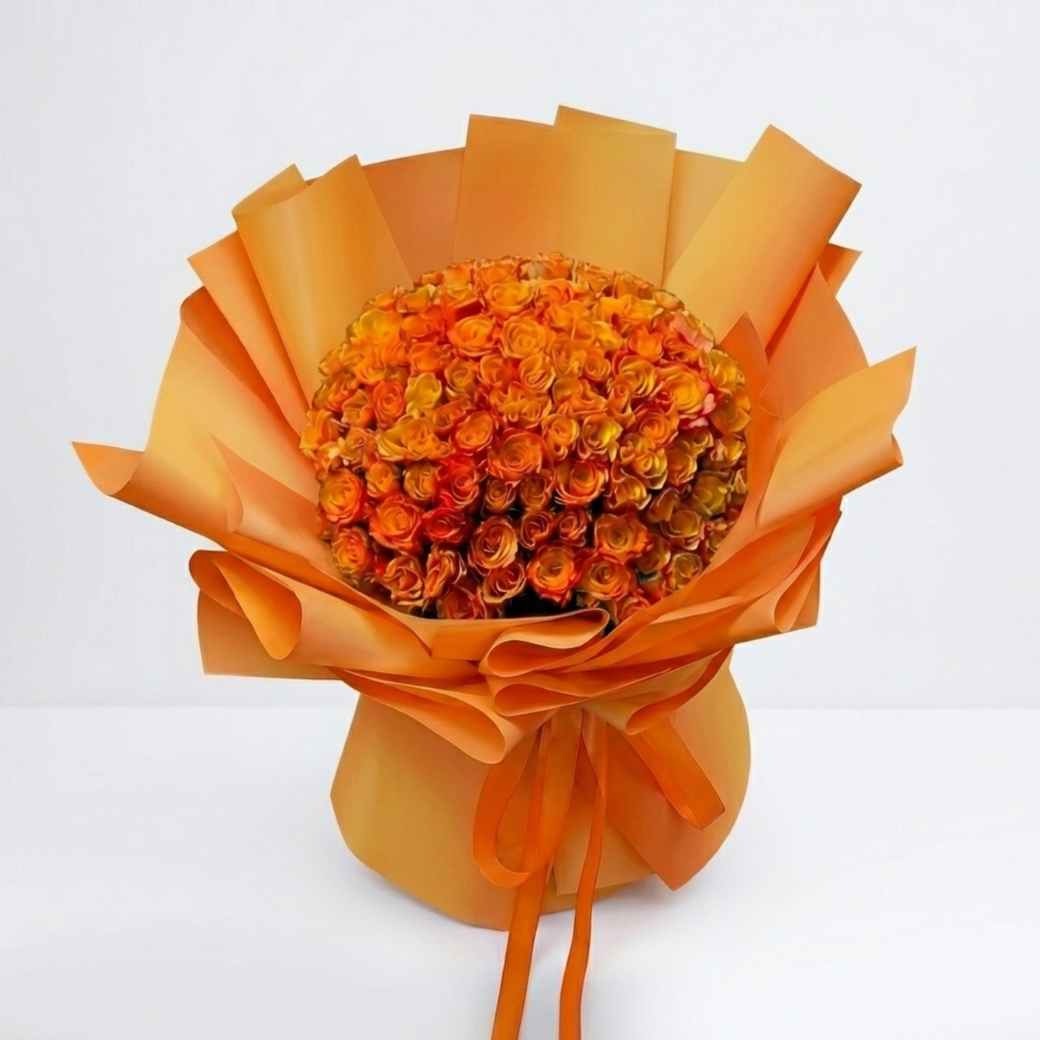 ช่อดอกไม้สด RY05 โดดเด่นด้วยกุหลาบสีส้มสดใสจัดทรงพุ่มแน่นอลังการ ห่อด้วยกระดาษสีส้มเข้าชุดใน โทนเหลือง/ส้ม หากคุณมองหา ร้านดอกไม้ใกล้ฉัน ที่เน้นความสดใหม่ กลิ่นมาลีพร้อมจัดส่งให้ถึงมือครับ