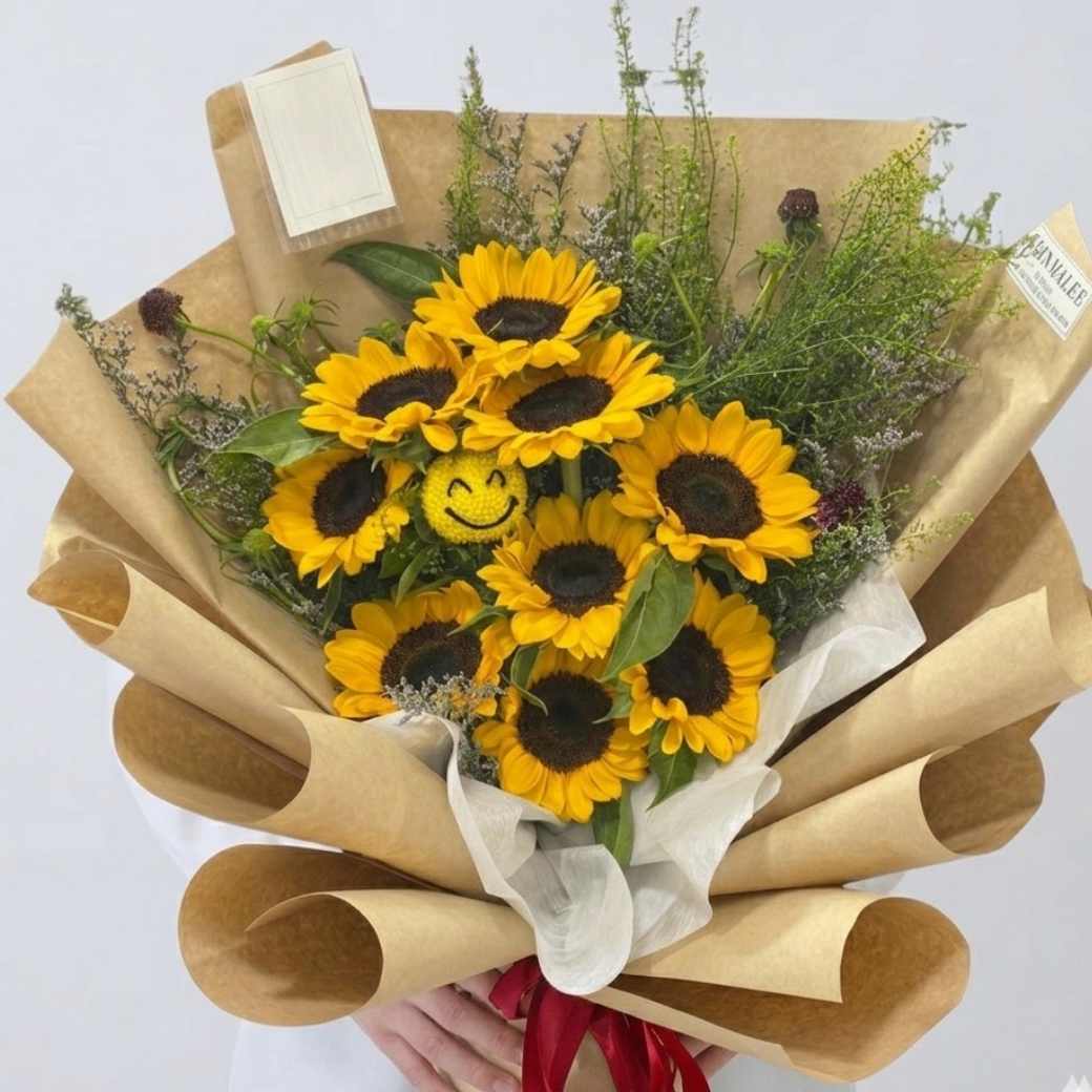 ช่อดอกทานตะวัน SUN08 จัดในสไตล์ มินิมอลเกาหลี ห่อด้วยกระดาษคราฟท์โทนสีน้ำตาลดูอบอุ่น เป็น ร้านดอกไม้ใกล้ฉัน ส่งฟรี ที่พร้อมส่งต่อความสดใสในทุกโอกาสพิเศษครับ