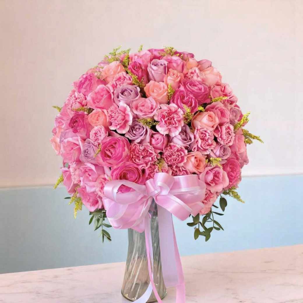แจกันดอกไม้ VASECLP03 อัดแน่นไปด้วยความหวานของ ช่อดอกไม้รวม โทนสีชมพูเข้มและอ่อน จัดเป็นทรงพุ่มกลมสวยงาม เหมาะสำหรับเป็นของขวัญ ดอกไม้ให้แฟนวันวาเลนไทน์ หรือวันครบรอบ รับรองว่าผู้รับต้องประทับใจแน่นอน