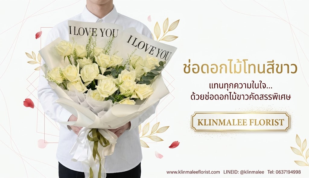 อย่าปล่อยให้ช่วงเวลาดีๆ ผ่านไป สั่งซื้อช่อดอกไม้โทนสีขาวแทนความจริงใจกับเราตอนนี้เลยค่ะ! เพื่อส่งมอบรอยยิ้มและความปรารถนาดีให้คนสำคัญของคุณ เรามีบริการของเราที่สะดวกรวดเร็ว ตอบโจทย์ผู้ที่ต้องการสั่งดอกไม้ delivery ใกล้ฉัน ส่งตรงถึงมือผู้รับอย่างปลอดภัย การันตีว่าผู้รับต้องประทับใจแน่นอน 100% ค่ะ นอกจากนี้ klinmalee florist ยังมีทางเลือกสวยๆ อย่างช่อดอกไม้พาสเทล สุดละมุน หรือจะเลือกโทนธรรมชาติ และโทนน้ำเงิน ก็ดูดีไม่ซ้ำใคร มั่นใจในคุณภาพจากร้านดอกไม้สดใกล้ฉัน ได้เสมอ รีบตัดสินใจสั่งเลยวันนี้ เพื่อความประทับใจที่ไม่รู้ลืมค่ะ